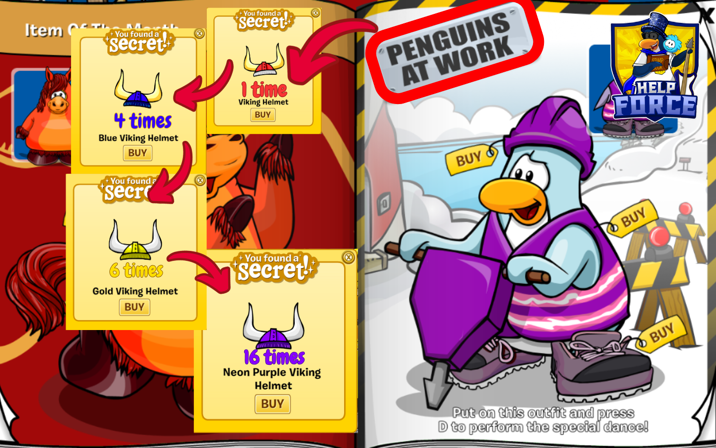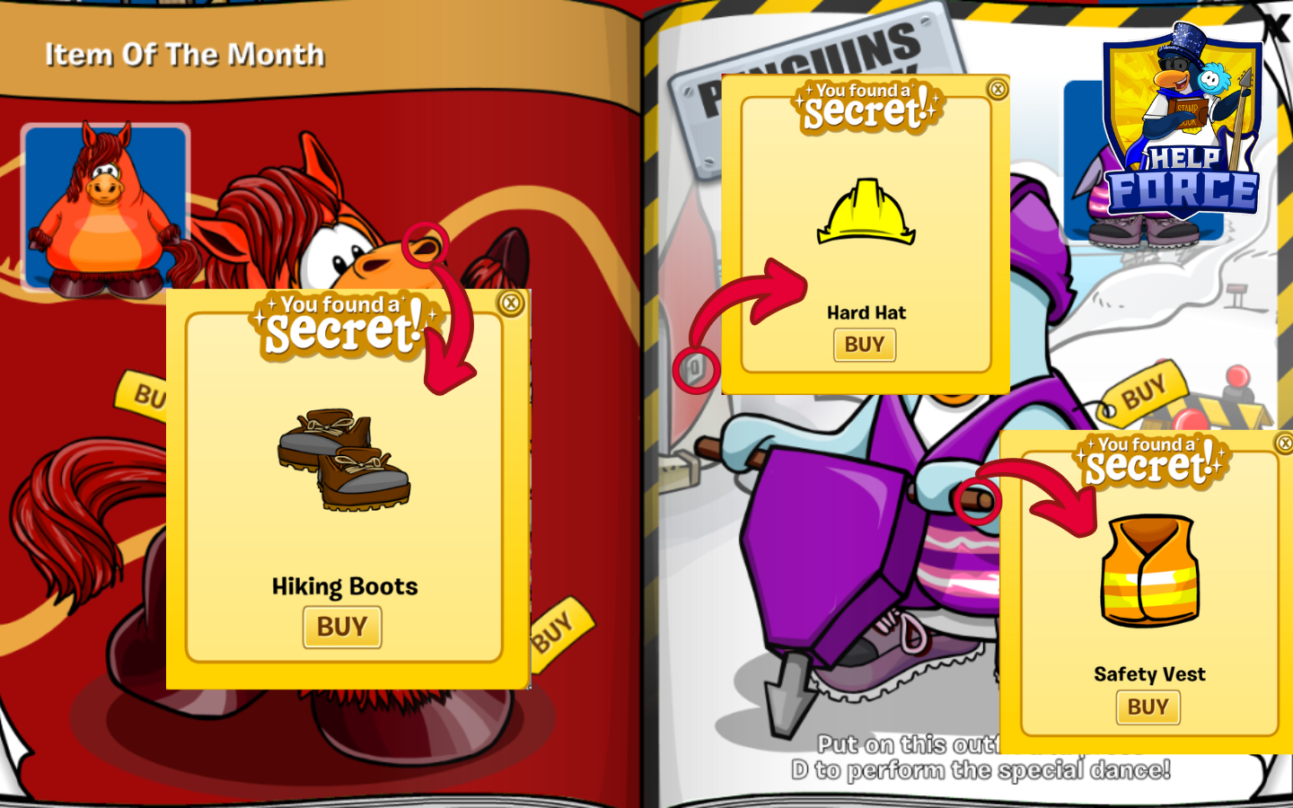 The Penguin At Work this month is the Purple Hard Hat, Purple Safety Vest and the Purple Hiking Boots. If you do not want the Purple items, there are also hidden: